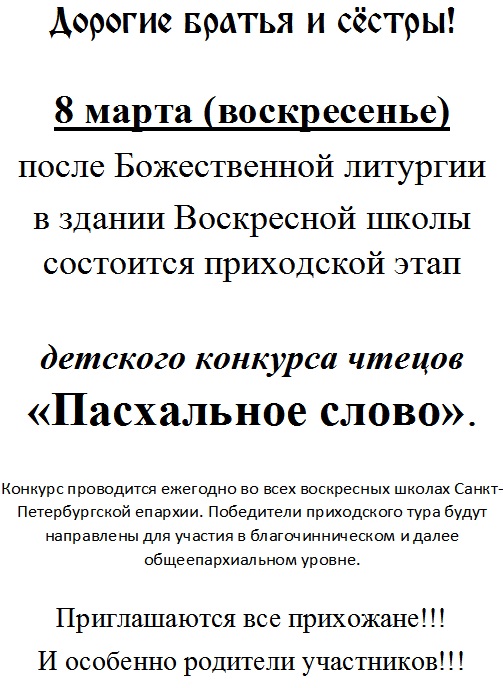 Предстоящая суббота – Родительская (заупокойная)!