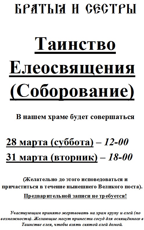 В нашем храме будет совершаться