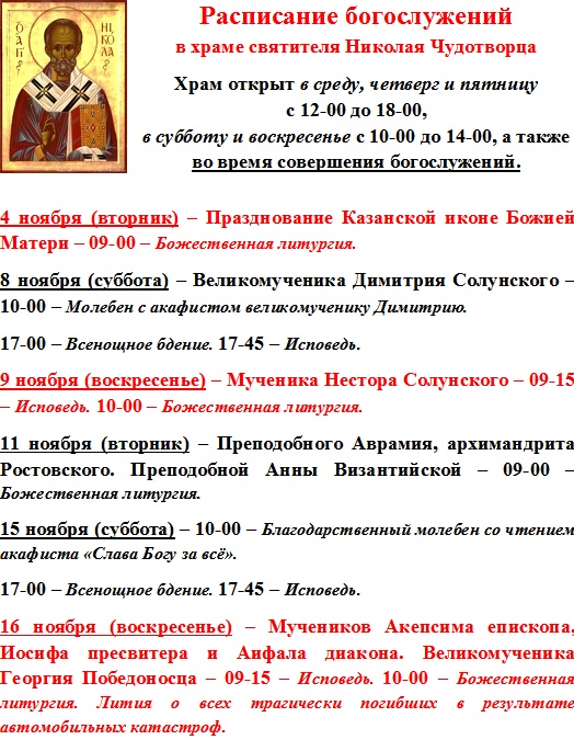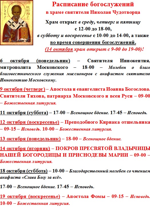 Что касается совершения всех остальных треб и священнодействий, подробную информацию уточняйте либо на свечной лавке нашего храма, либо по телефону у настоятеля – 8-981-153-58-29 (отец Александр).
