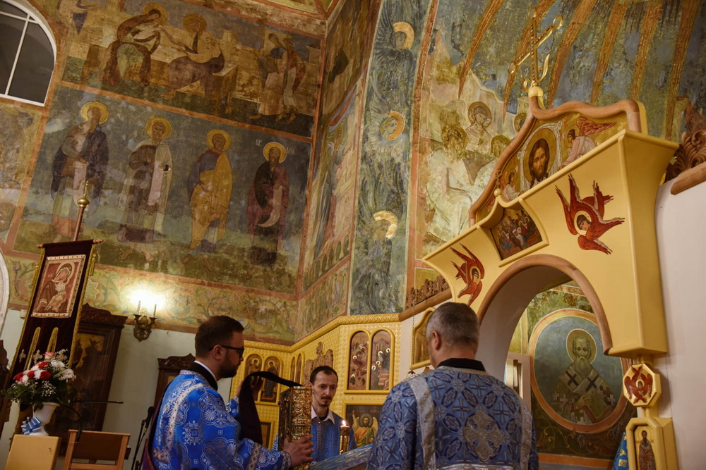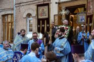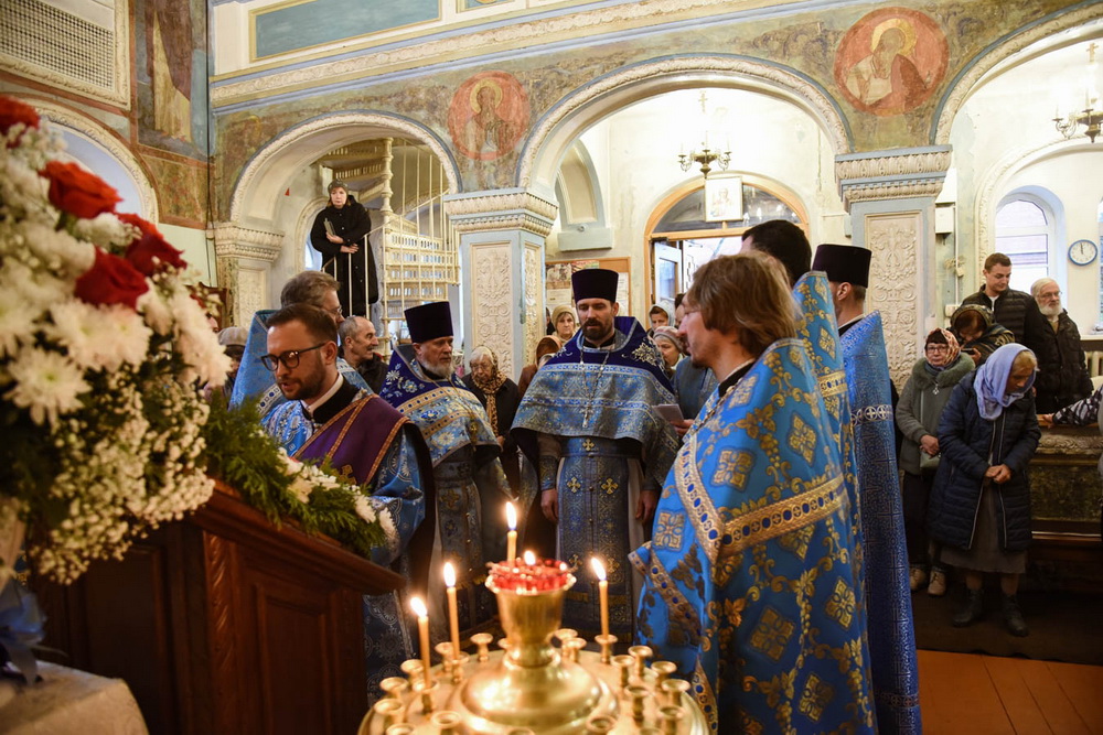 Божественную литургию в честь престольного торжества возглавил благочинный Царскосельского округа протоиерей Никита Зверев в сослужении настоятеля иерея Александра Антонова, клириков храма и гостей. Сонму духовенства сослужил также и настоятель Свято-Никольского храма в ЖК «Новая Скандинавия» г. Санкт-Петербурга иерей Александр Гинкель.
