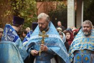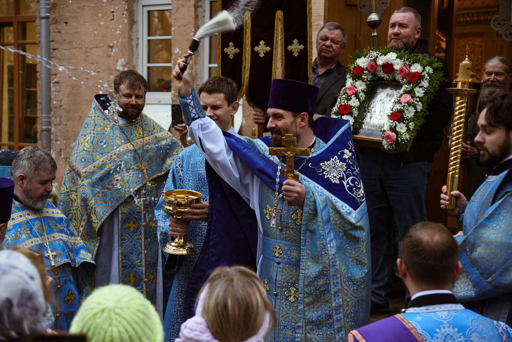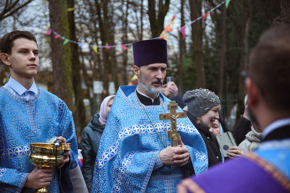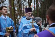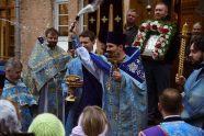 В завершение Литургии состоялся Крестный ход, пасмурная ветреная погода не испортила праздник: лица молящихся были исполнены радостью. После Крестного хода отец Никита обратился к прихожанам с поздравительным словом, поблагодарил отца Александра за труды, отец Александр преподнес благочинному букет роз.