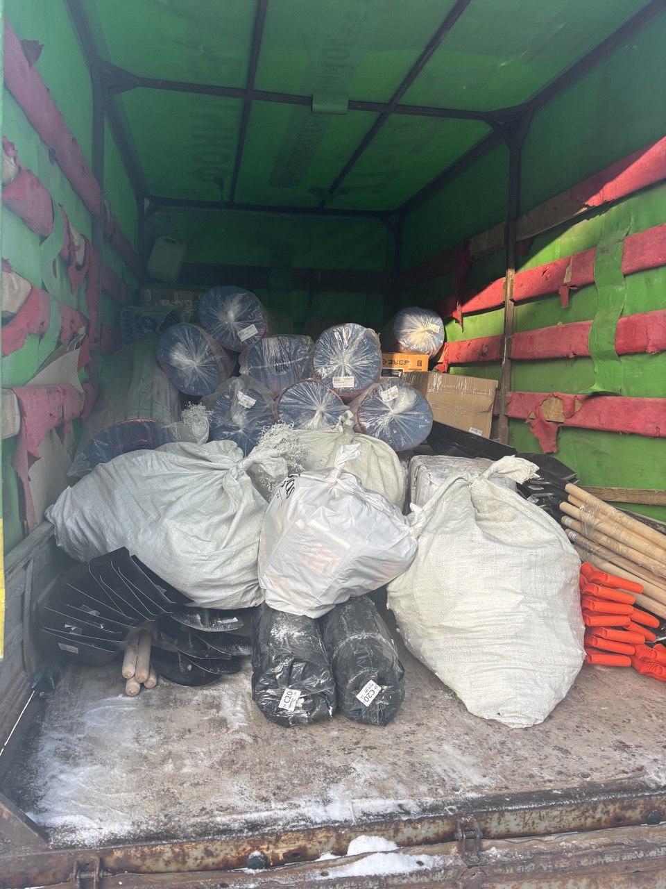 В составе гуманитарной помощи: крепежный материал, шанцевый инструмент и электроинструменты, утеплитель, электрические фонари, термоса, электрогенераторы, стабилизаторы напряжения, мониторы, принтеры (МФУ) и комплектующие к ним, одноразовая посуда, термобелье, продукты питания долгого хранения, костюмы спортивные, нижнее белье, носимые и автомобильные радиостанции, иные материальные ценности.