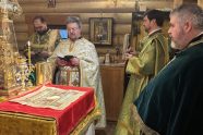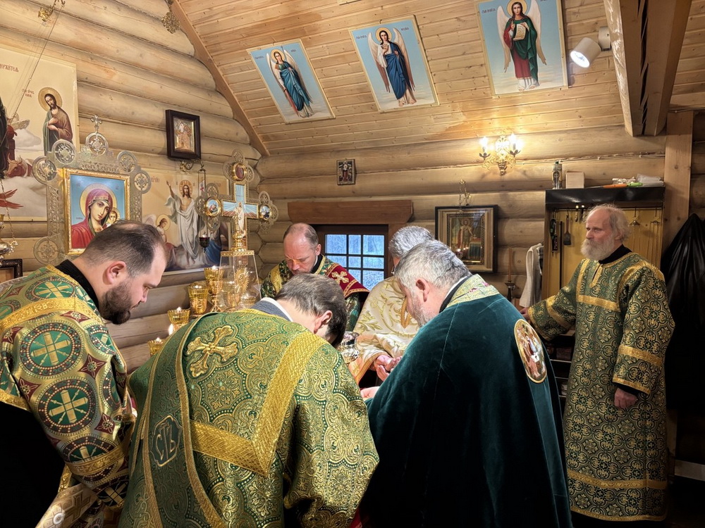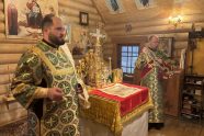 Праздничные торжества традиционно начались Божественной литургией, которую вместе с иереем Александром Гинкель сослужили настоятель храма апостола и евангелиста Луки при Академии Штиглица иерей Илия Павлов, клирик храма Спаса Нерукотворного образа в Парголово протодиакон Дионисий Симончук, клирик храма великомученика Димитрия Солунского в Коломягах диакон Владислав Серков и клирик собора Рождества Христова г. Новокузнецка (Кемеровская митрополия) диакон Кирилл Мальцев. В нашем храме впервые в истории на Богослужении сослужило сразу три диакона!