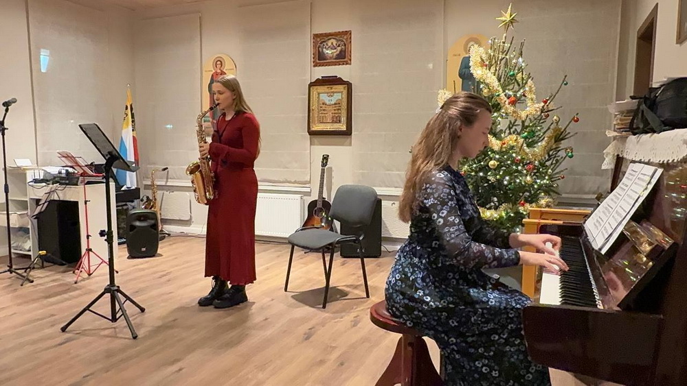 Музыкальную часть на саксофоне представили сестра и брат: выпускница нашей Воскресной школы Полина Малёткина, и ныне учащийся в ней Михаил Малёткин. Их таланты развиваются под чутким руководством отца семейства — Михаила Малёткина старшего, который также аккомпанировал сыну на гитаре.