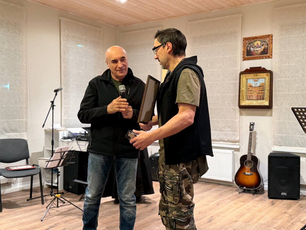 Затем были вручены Благодарственные грамоты: за помощь в оказании гуманитарной миссии 27-й гвардейской мотострелковой бригаде от Командира Войсковой части 61899 — Ренату Тангалычеву; за содействие в деле социального служения Прихода, а также оказание гуманитарной и организационной помощи, направленной на поддержку и нужды российских воинов-освободителей от Настоятеля Свято-Никольского храма — Владимиру Лукину.