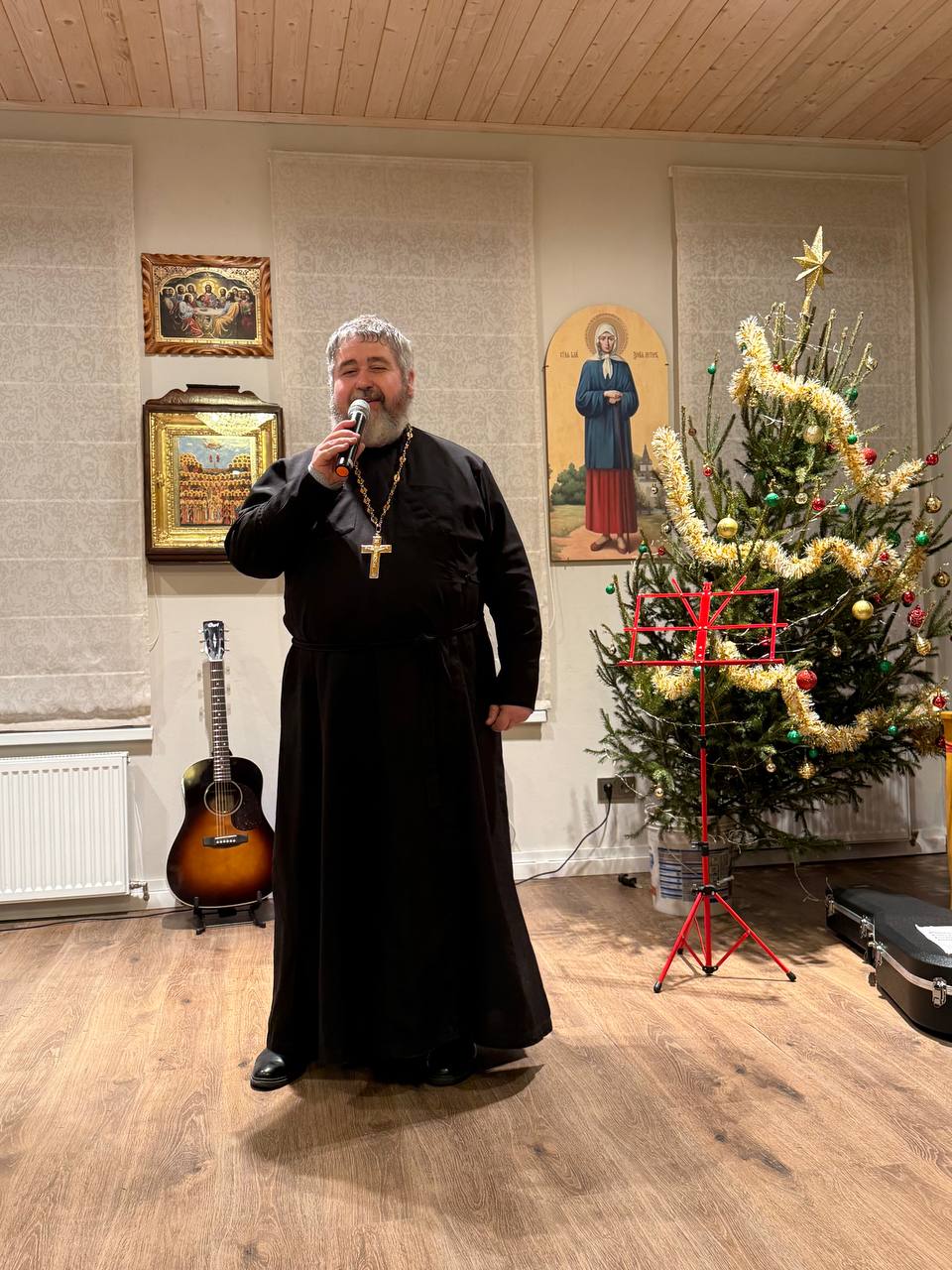 Концерт открыл настоятель храма иерей Александр Гинкель, поприветствовав всех и пожелав счастливого завершения 2025 года. Он же был и ведущим всей творческой программы, обращаясь к зрителям и слушателям между выступлениями с краткими репликами и назиданиями.
