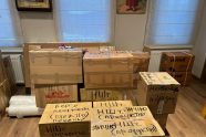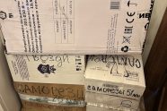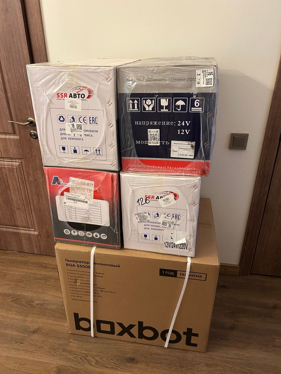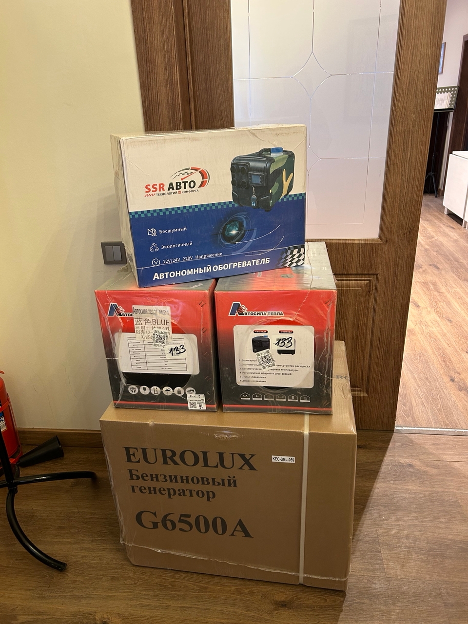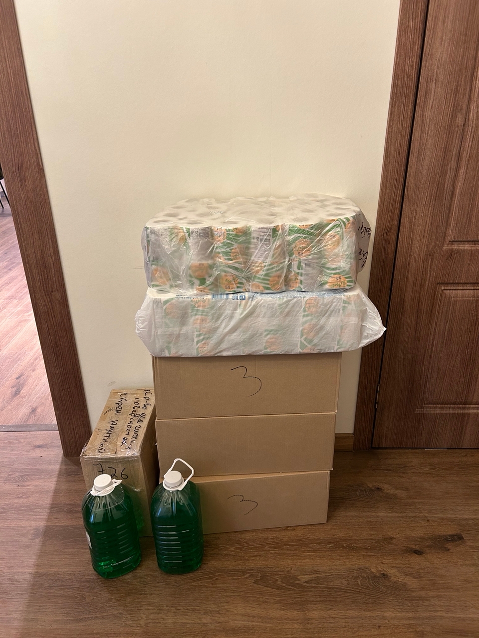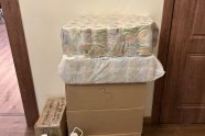 — Продукты питания длительного хранения (консервы, колбасы, соленья, печенье, вафли, зефир, конфеты, сухофрукты, соки, чай, кофе — 8 коробок — 80 кг;