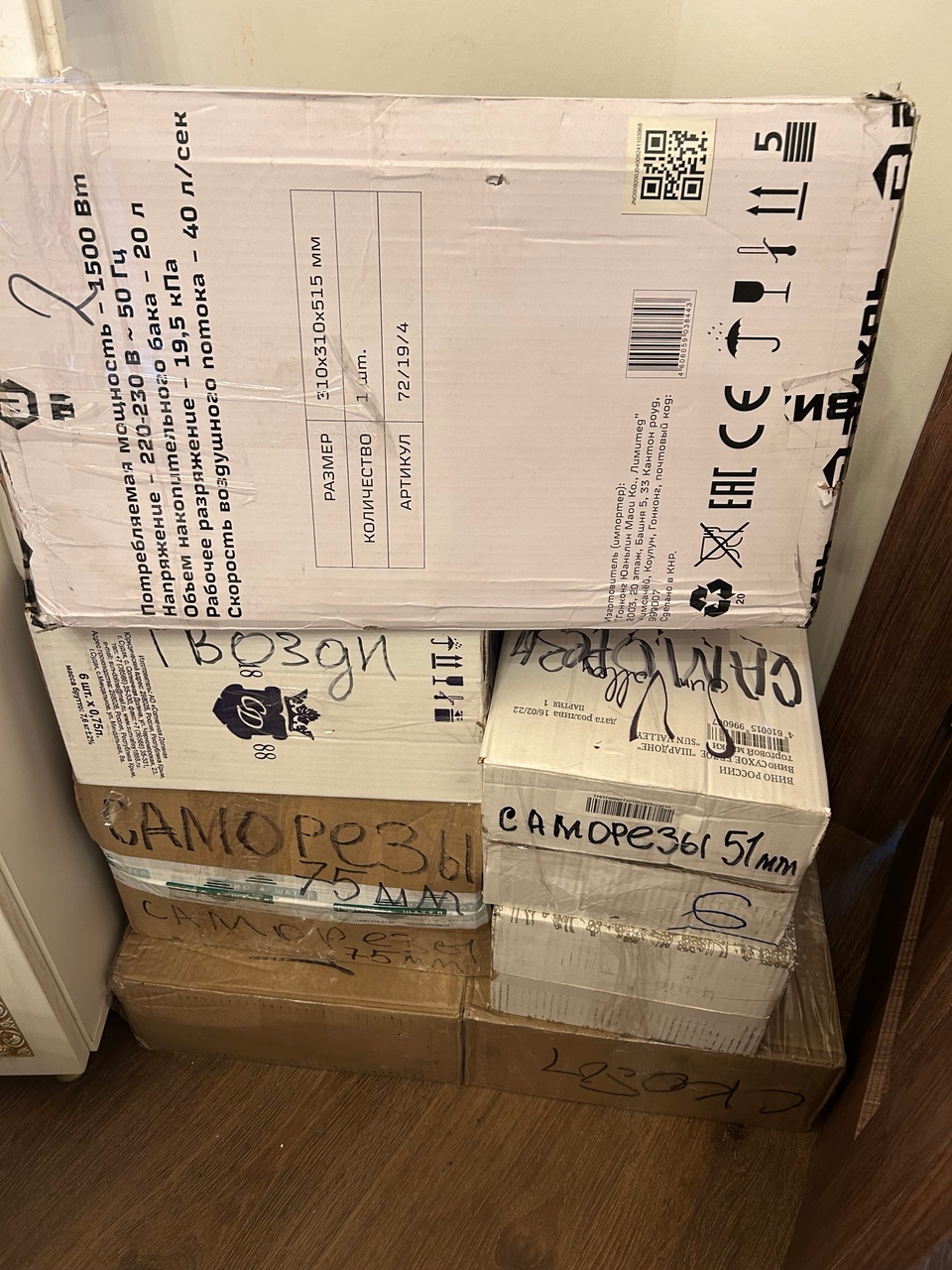 — Саморезы 51 мм, 75 мм — 20 кг;