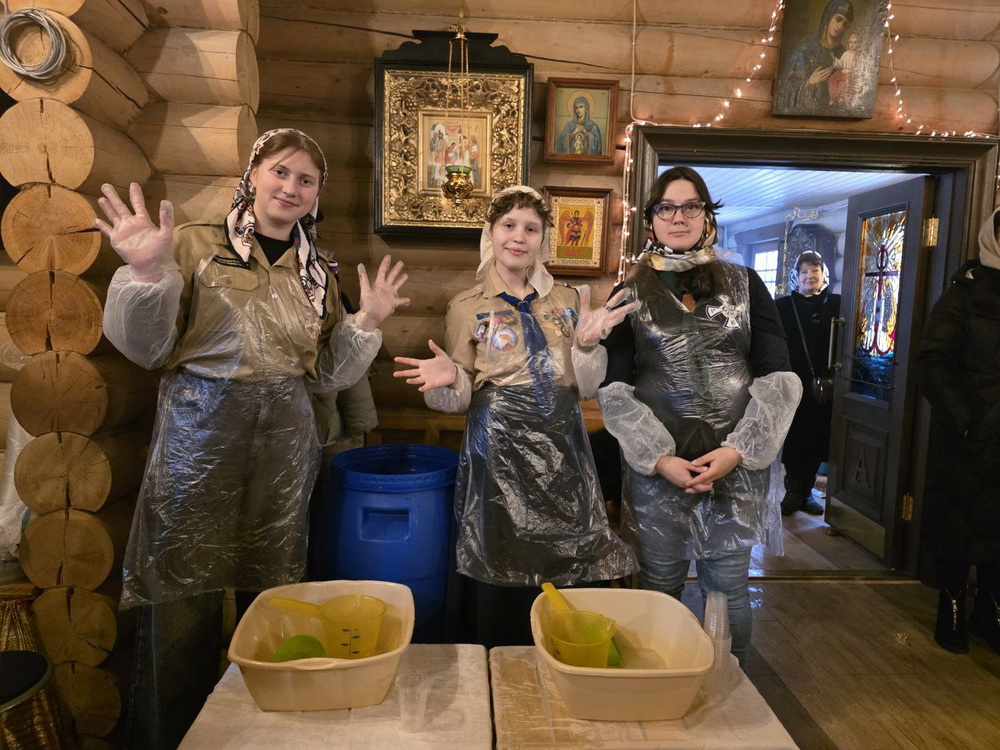 В раздаче воды в этот день принимали участие юные разведчицы звена «Сакура» нашего храма во главе с руководителем Натальей Бобиной.