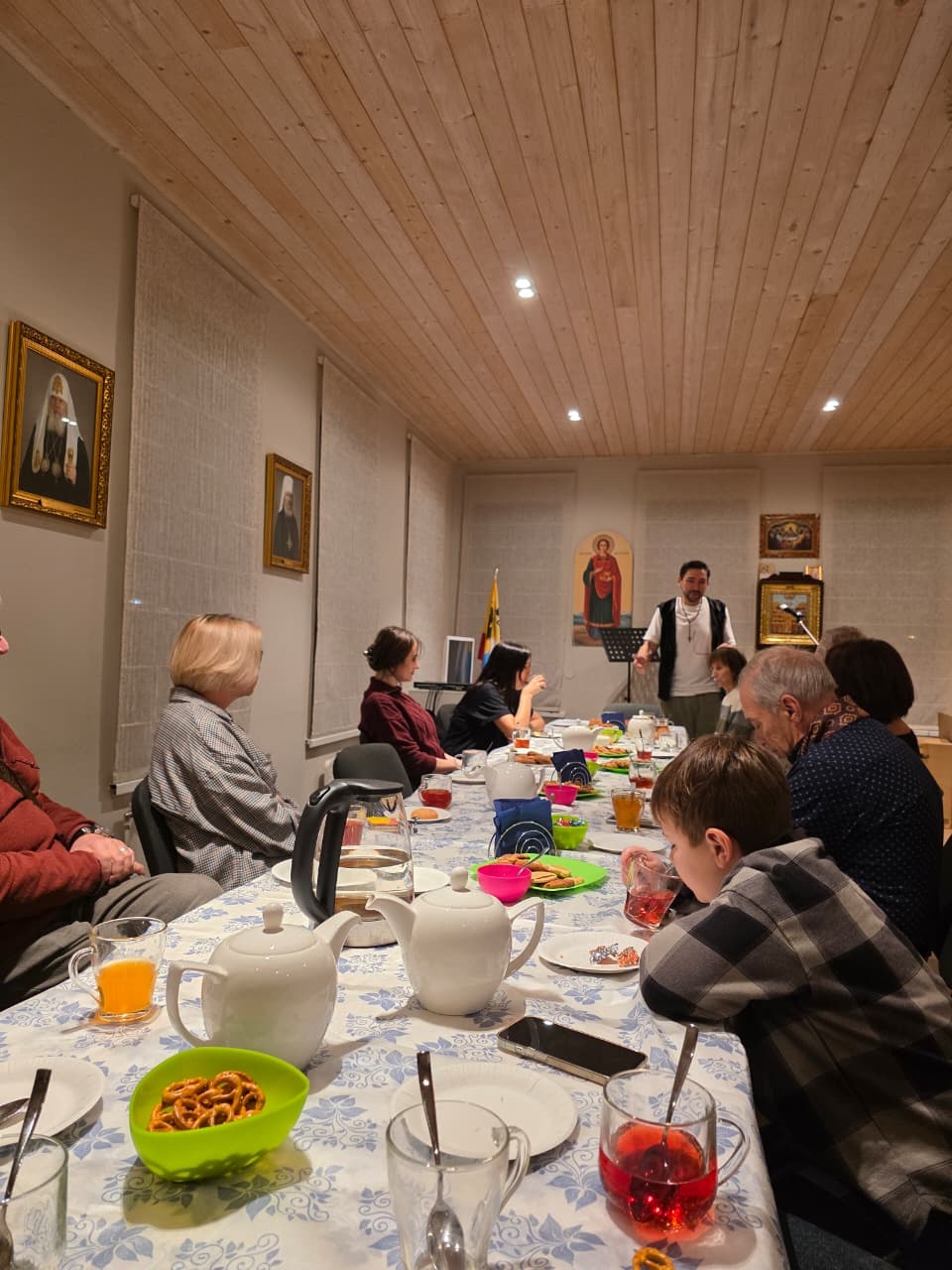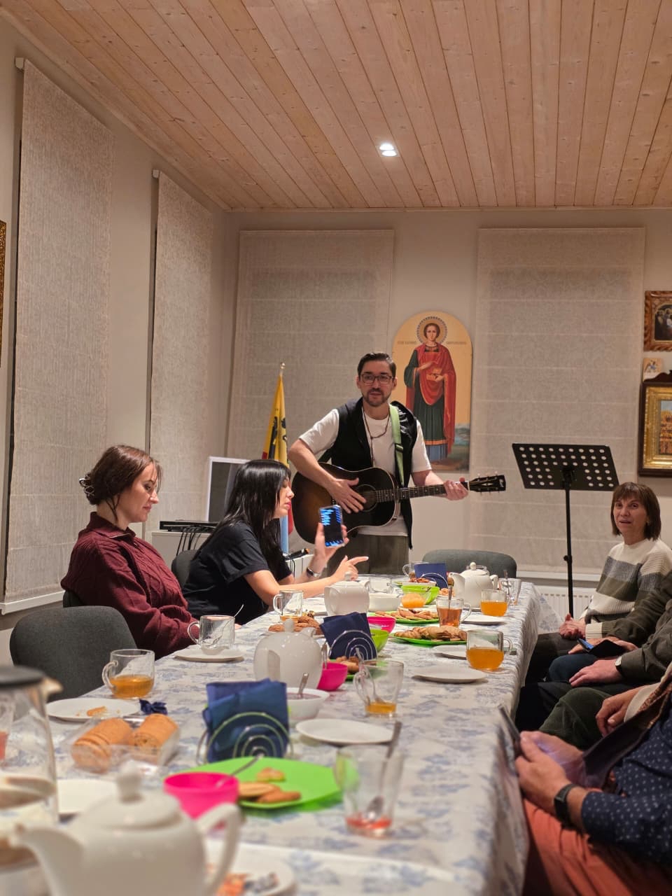 31 октября 2025 года в Воскресной школе Свято-Никольского храма по инициативе приходского клуба «Дорога к Богу» состоялся творческий вечер «Любимые песни под гитару и не только!».