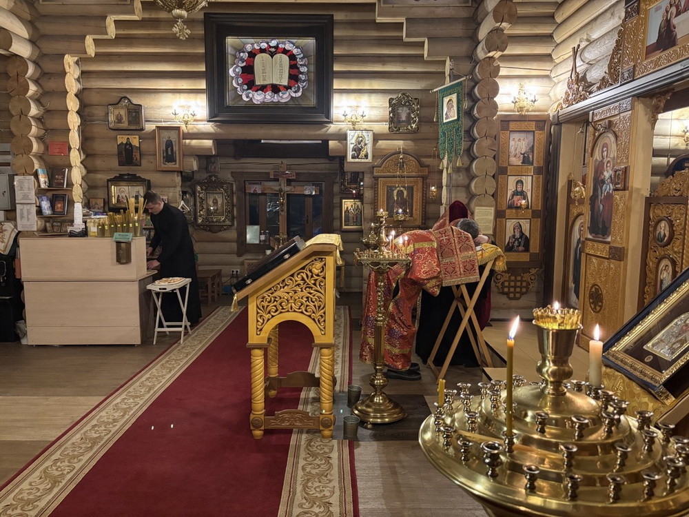 В Свято-Никольском храме в ЖК «Новая Скандинавия» г. Санкт-Петербурга накануне вечером совершено Всенощное бдение, а в сам воскресный день — Божественная литургия и Панихида.
