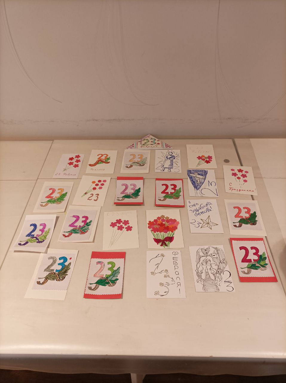Ребята с большим удовольствием и творчески подошли к этому предложению и быстро справились с задачей. Все открытки были в этот же день переданы бойцам.