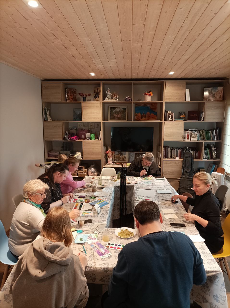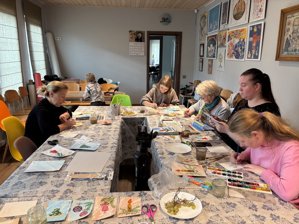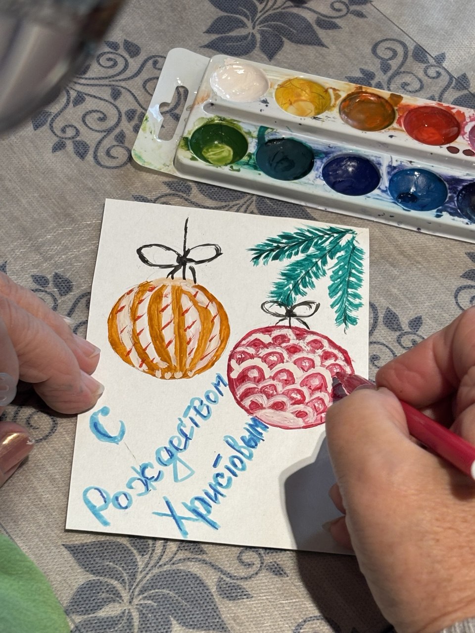 19 октября 2025 года на очередной встрече приходского клуба «Дорога к Богу» был проведен мастер-класс по рисованию на тему: «Открытки к Рождеству Христову». Пришедшие художники — как профессионалы, так и любители, — рисовали открытки к предстоящему Празднику Христова Рождества для их последующей отправки с гуманитарной помощью на фронт.