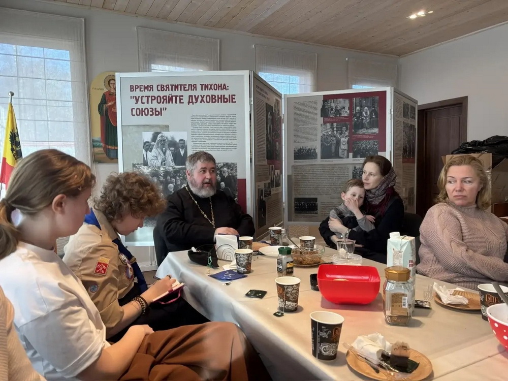 Данная тема собрала два направления прихожан: членов православного приходского клуба «Дорога к Богу» и юных разведчиц ОРЮР звена «Сакура». Основными выступающими спикерами Круглого стола (проходившего в непринужденной обстановке с чаепитием) стали директор Центра духовной культуры и образования Выборгского благочиния, настоятель храма иерей Александр Гинкель, кандидат богословия, сотрудник Санкт-Петербургской Академии постдипломного педагогического образования Александр Майков, а также член Свято-Вениаминовского православного братства Наталия Швачко, кандидат биологических наук и куратор выставки «Время святителя Тихона».