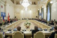 К участникам круглого стола обратилась Анастасия Мельникова. Она зачитала приветственное слово Председателя Законодательного Собрания Санкт-Петербурга Александра Бельского: