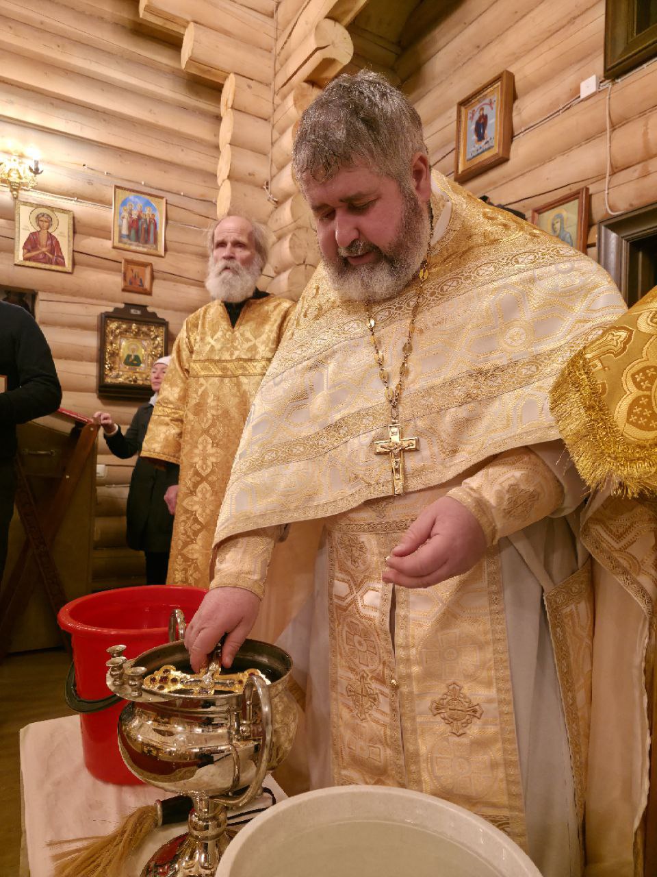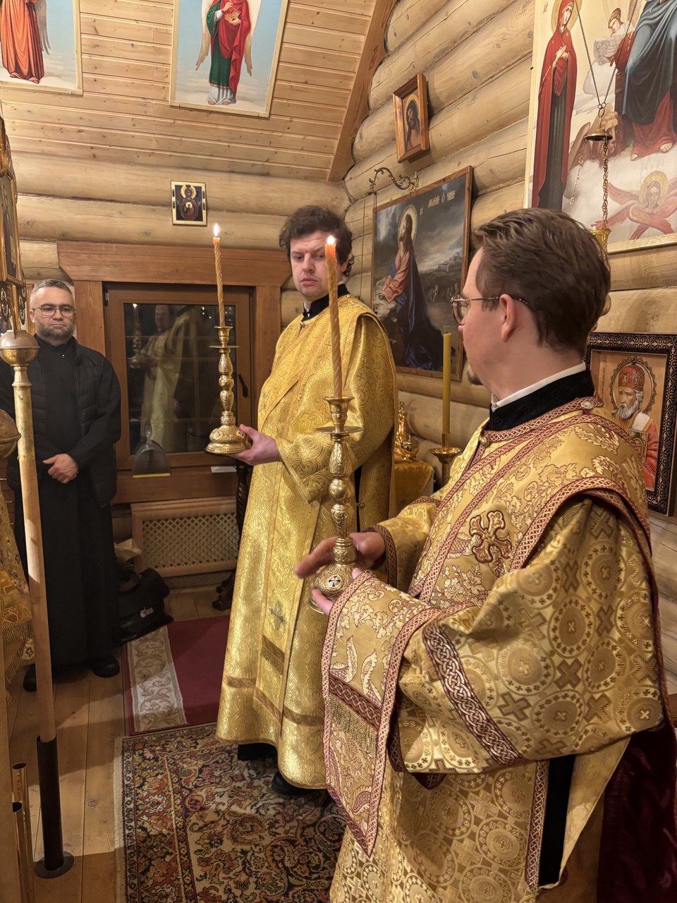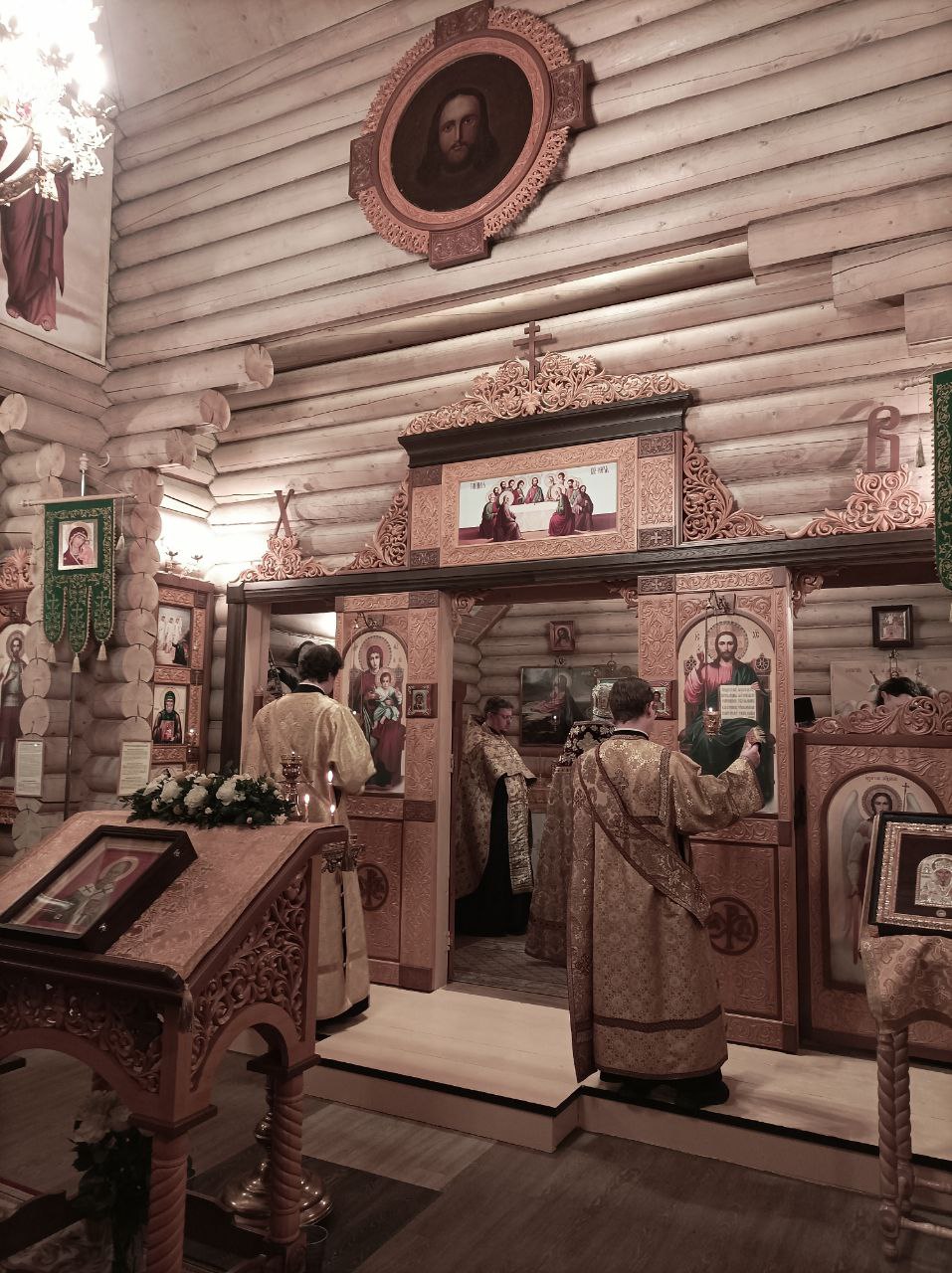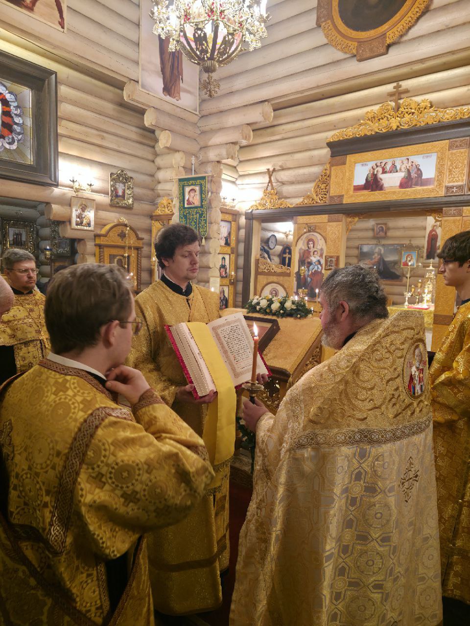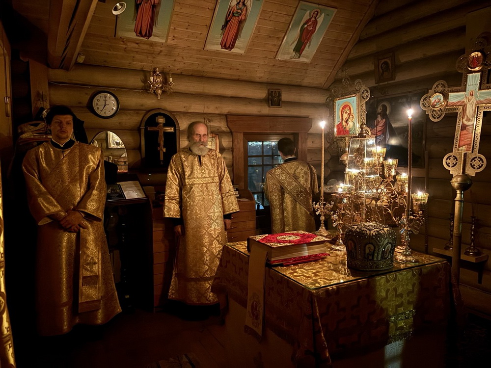 Накануне вечером также по уже сложившейся традиции Всенощное бдение возглавил Благочинный Выборгского округа Санкт-Петербургской епархии протоиерей Александр Будников. Ему сослужили настоятель храма иерей Александр Гинкель, настоятель храма апостола и евангелиста Луки при Академии Штиглица иерей Илия Павлов, клирик храма святого пророка Илии на Пороховых (Красногвардейское благочиние) диакон Михаил Волков и клирик храма Спаса Нерукотворного Образа в Парголово диакон Игорь Фалеев.