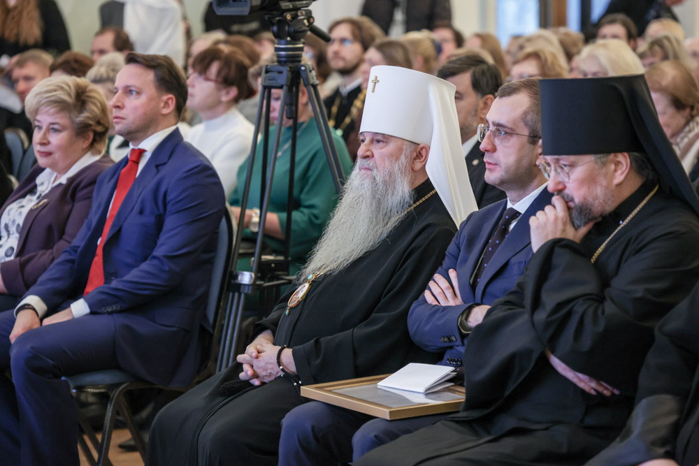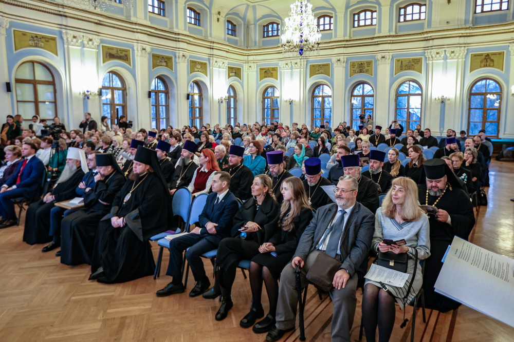 Рождественские чтения Санкт-Петербургской епархии «Просвещение и нравственность: формирование личности и вызовы времени» прошли 11 декабря 2025 года в Синем зале епархиального управления. В зале присутствовали митрополит Санкт-Петербургский и Ладожский Варсонофий, наместник Александро-Невской лавры епископ Кронштадтский Вениамин, ректор СПбДА епископ Петергофский Силуан, клирики епархии, сотрудники епархиального управления, педагоги и учащиеся. Ведущими выступили председатель ОРОиК иерей Илия Макаров и актриса Мария Мельникова.