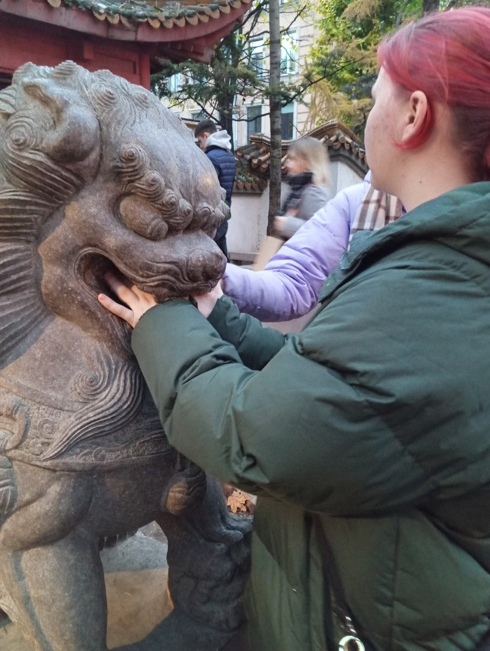 После завершения экскурсии мы отправились гулять по городу. Прошли Марсово поле, направились в сторону Китайского сада, где весной цветут деревья чудесной сакуры. Девчонки остались очень довольны!